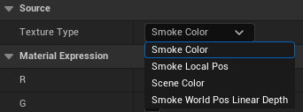 - SmokeWorldPosLinearDepth : Smoke world position and linear depth (World Position (x, y, z), Linear Depth)