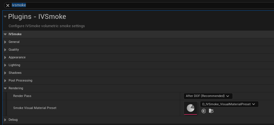Demo Material Path : Plugins → IVSmoke → DataAssets → D_IVSmoke_VisualMaterialPreset